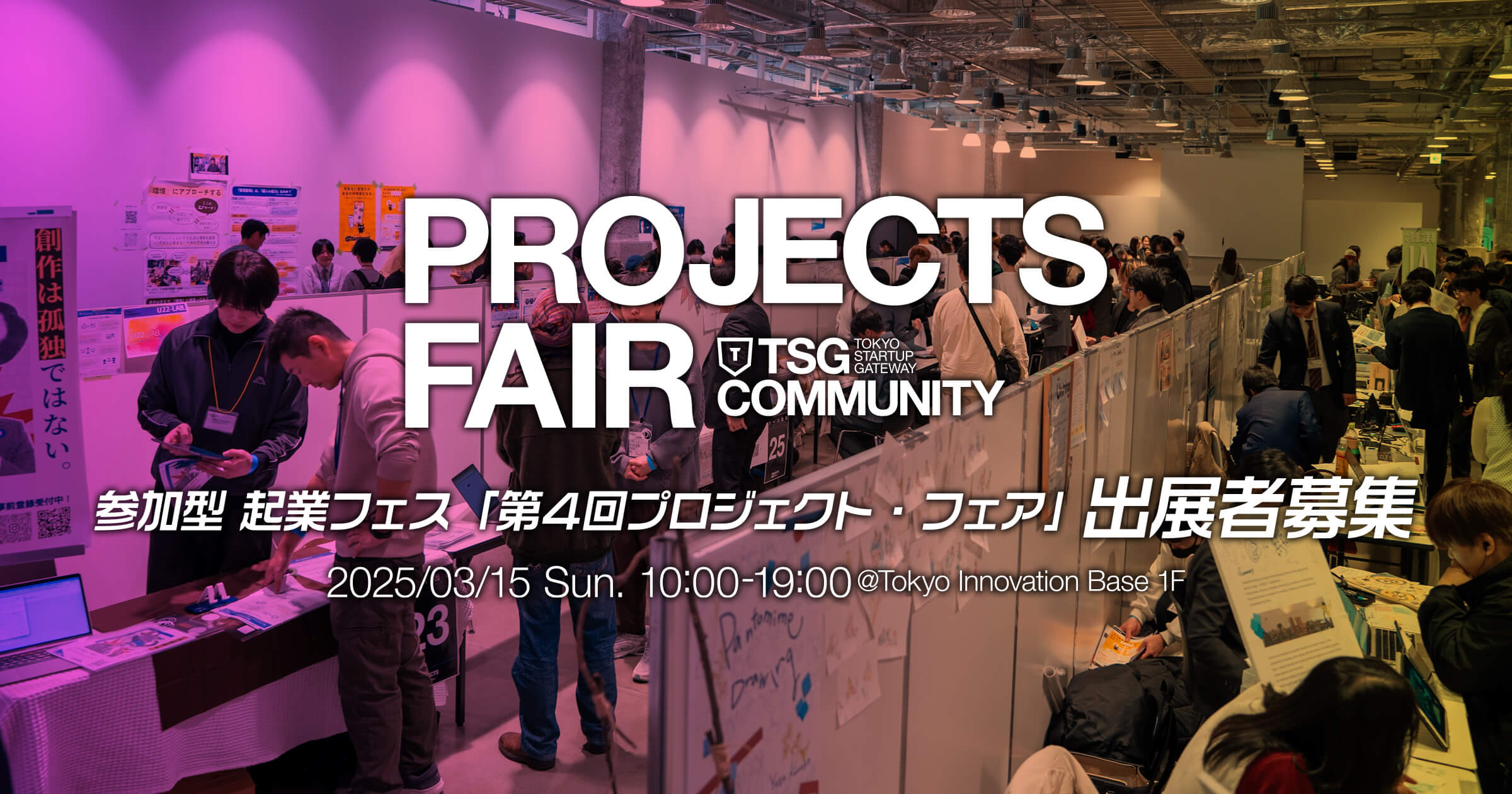 プロジェクト・フェアは、起業を志すメンバーが現在取り組んでいるプロジェクトやアイデアを持ち寄り、実験し、次の一歩を見つけるための参加型起業フェスです。